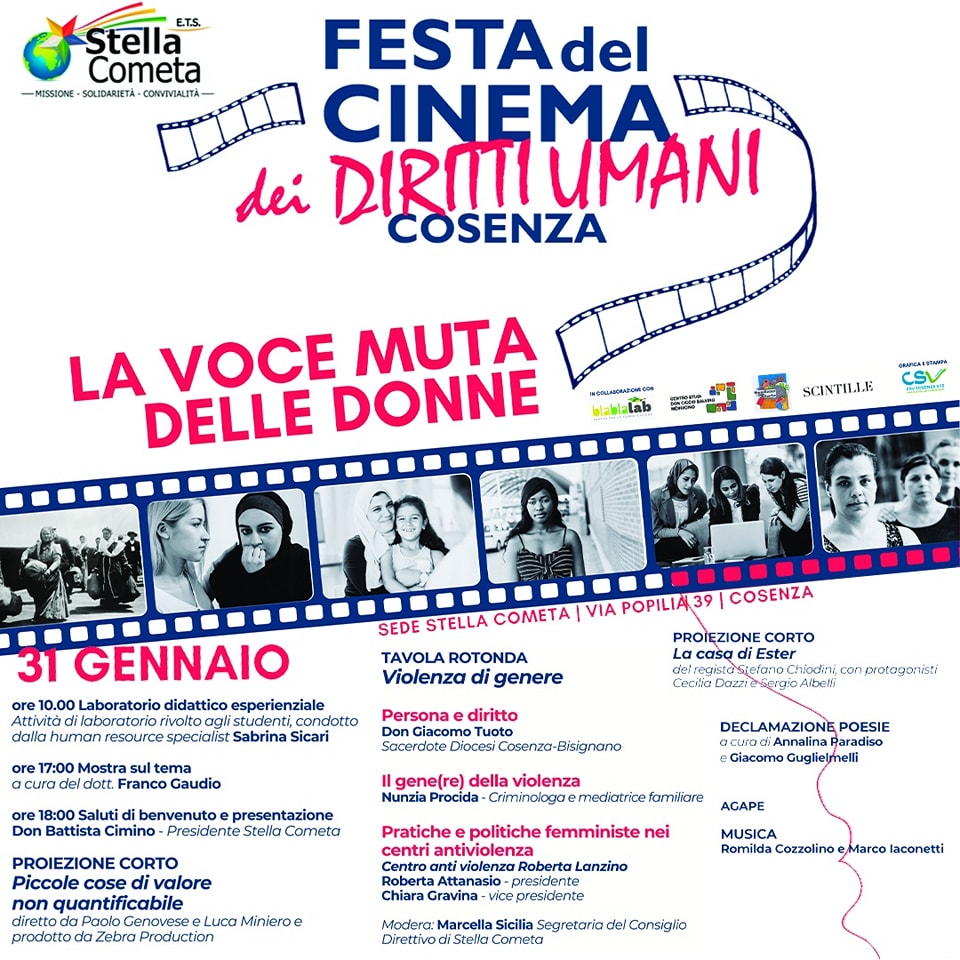 L’associazione Stella Cometa di Cosenza organizza la Festa del cinema dei diritti umani declinato sul tema della voce muta delle donne.