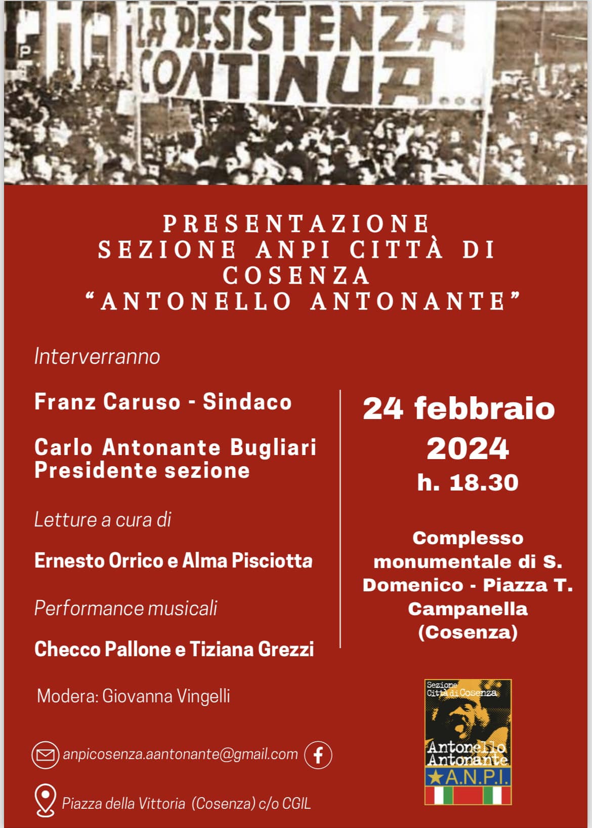 Costituita nel corso di un momento assembleare estivo, la sezione assume il nome di Antonello Antonante, come figura simbolo di impegno sui temi dell’antifascismo e personalità di notevole spessore culturale della città.
